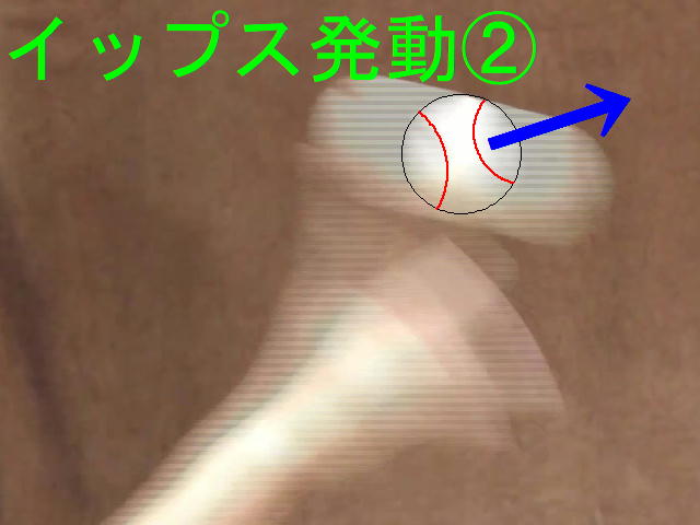 イップスの選手は体幹軸と上腕軸の関係が乱れます。関係が乱れているから体幹回転時に肘か上がり過ぎたり下がり過ぎたりします。体幹軸の遠心力が使えず手は肘より内側を通ります。(屈筋優位も影響する。腕が縮こまる)サイドスローで考えてみると体幹軸が横方向の回転をしているのに手が肘より内側に来ているということは、腕自体は縦に振っていることになり体幹と腕の振りにはバラバラの力が働き体幹の体重移動や回転力はまったく腕には伝わっていないことになります。結果、手投げになるということです。