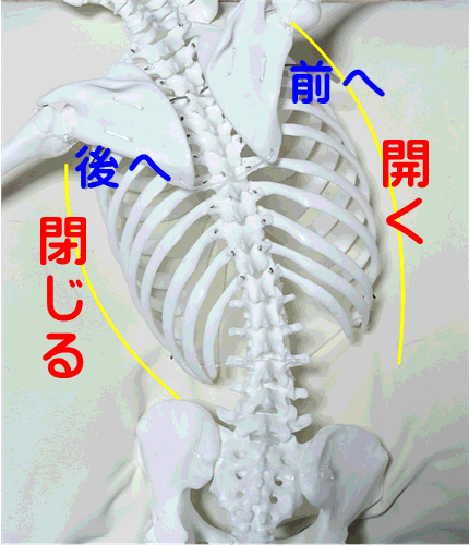正しい運動は骨盤が前傾気味で伸筋がやや緊張した状態で行われる。体重移動や回転運動がスムーズに出来る状態です。